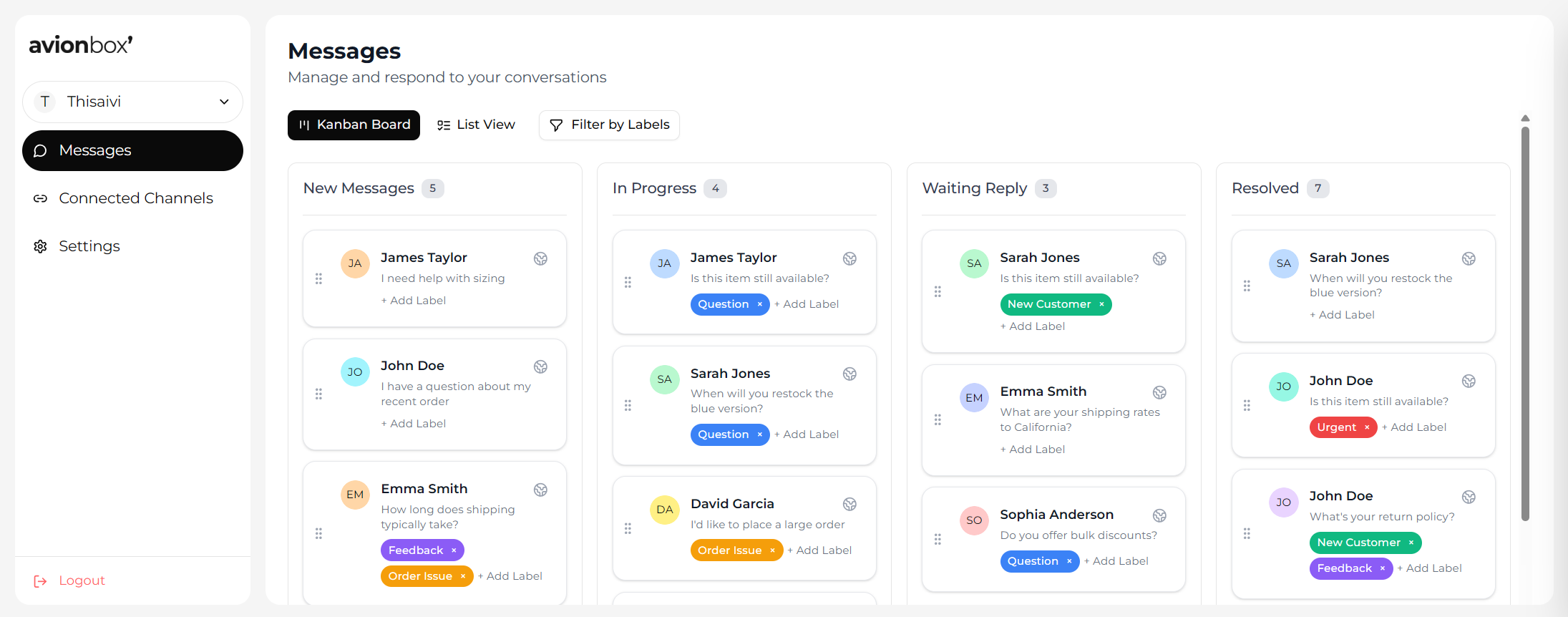 Organize and manage conversations effortlessly with our intuitive Kanban board. Drag and drop chats to categorize them by status, priority, or custom categories.